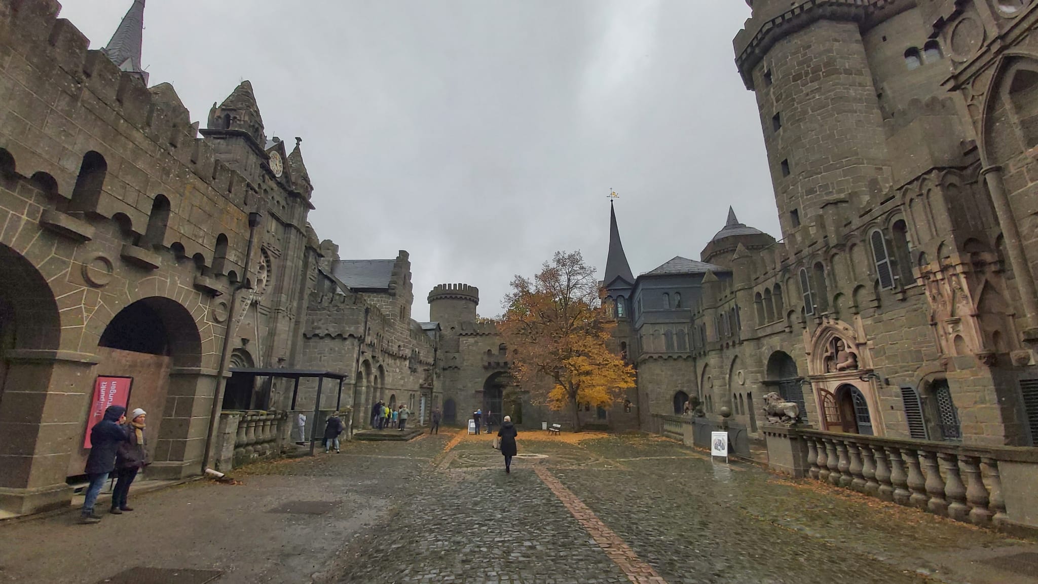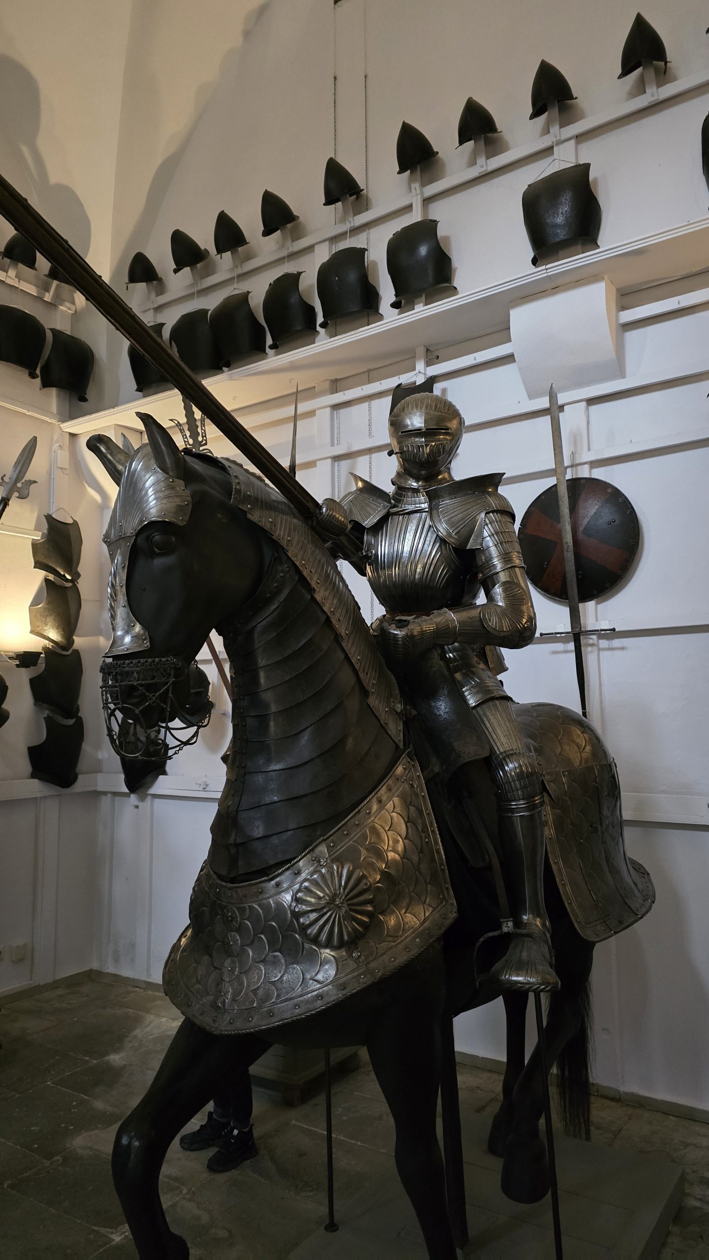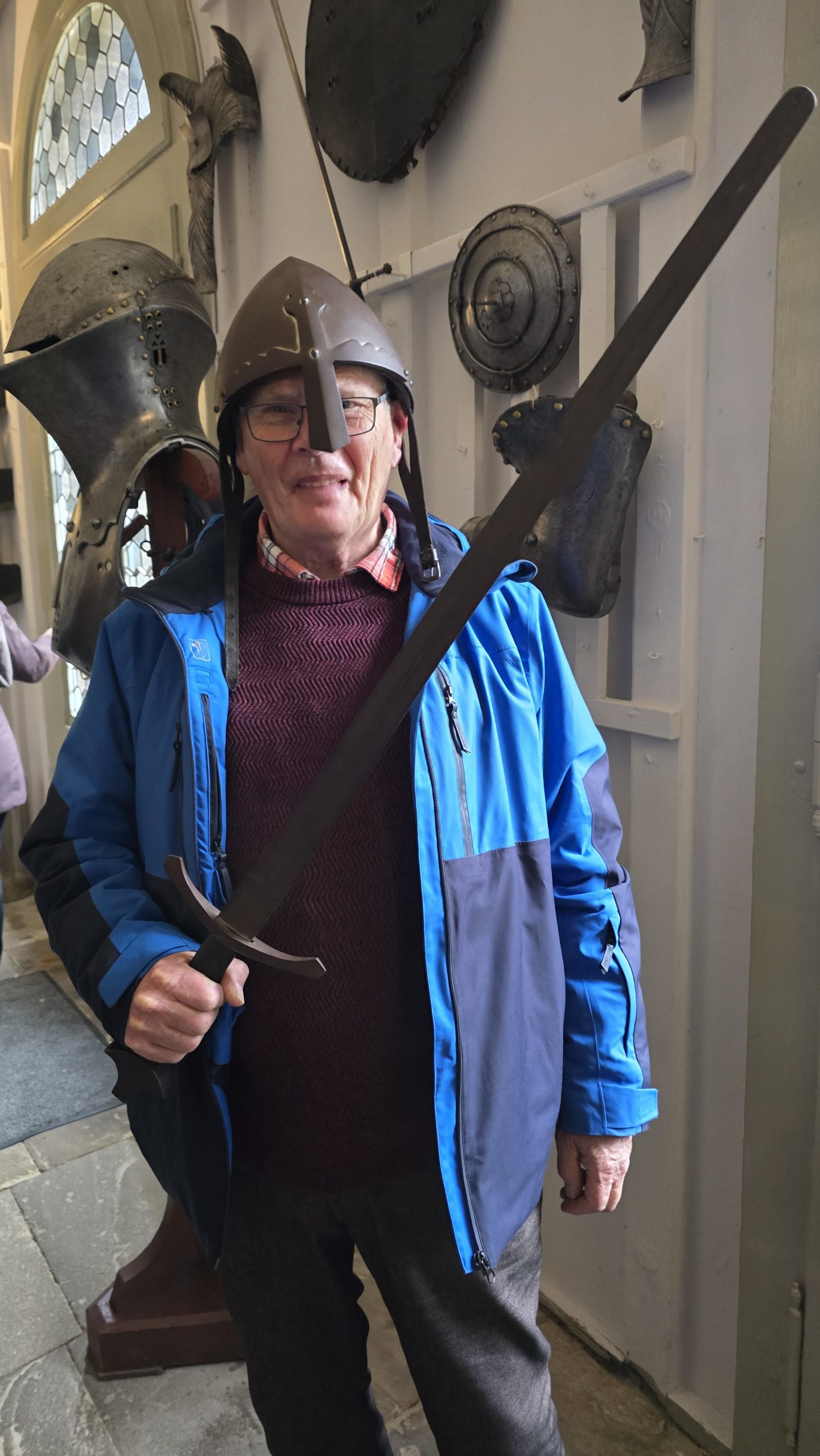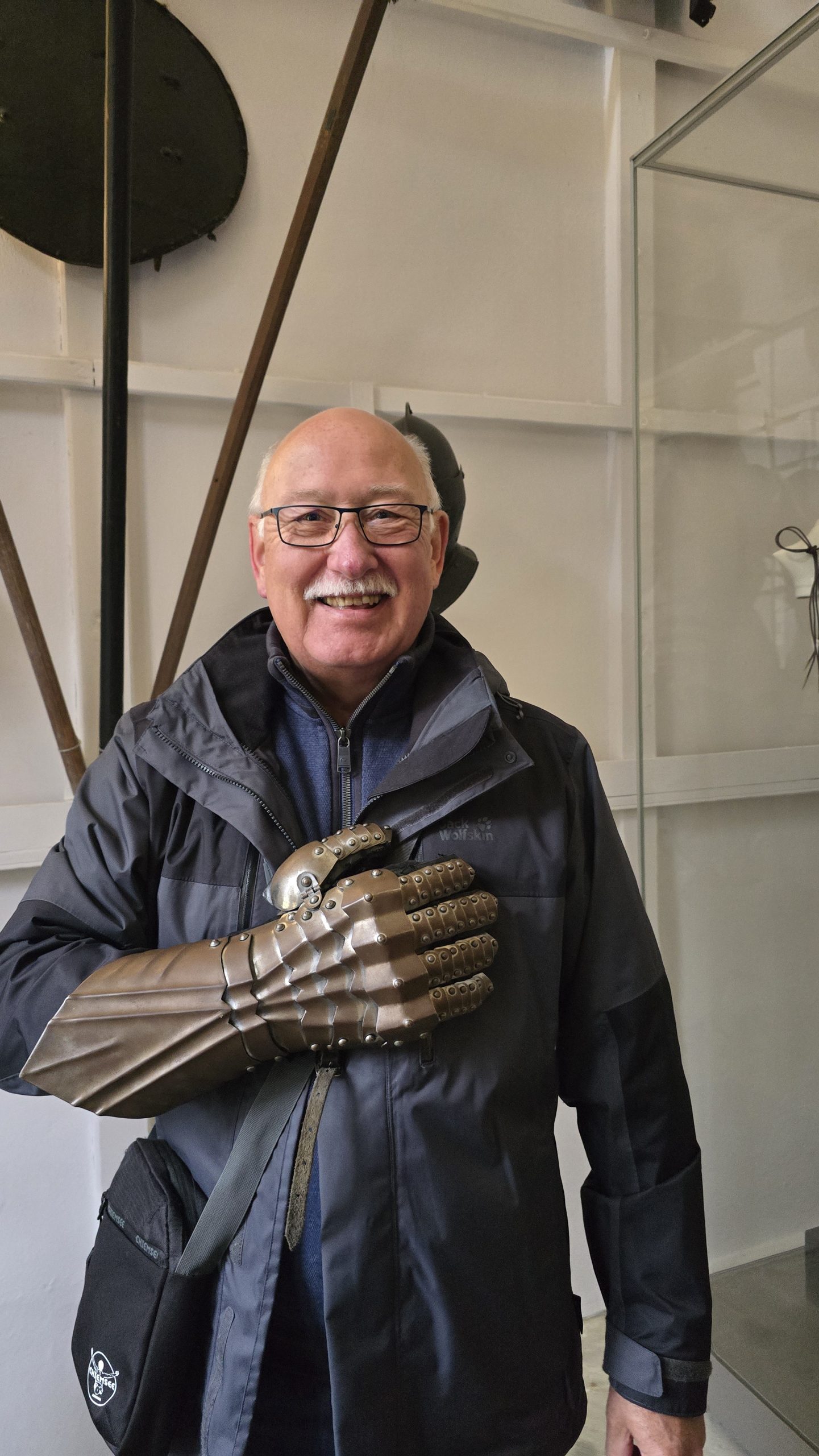 Weiter ging es vorbei an den imposanten Wasserkaskaden zur Löwenburg, einer romantisch gestalteten Ritterburg. Dort nahmen wir an einer etwa einstündigen Führung teil, bestiegen den Turm und genossen, trotz des Nebels, die Aussicht auf Park und Stadt Kassel. Anschließend sahen wir einen spannenden Film über die Geschichte der Burg, bewunderten verschiedene Ritterrüstungen und -ausstattungen und probierten sogar einige selbst an.