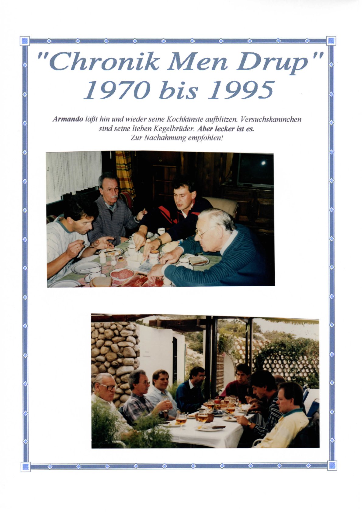 Armando, leider 2009 verstorben, wohnte das halbe Jahr in Brasilien. Wenn er hier war, kegelte er öfters mit. Er kochte ausgezeichnet, was der Kegelclub einmal im Jahr mit großem Appetit zu schätzen wusste. Horst wurde Nachfolger als Kassierer und hielt ab 1995 lange Zeit die Penunzen des Clubs mit eiserner Hand zusammen!