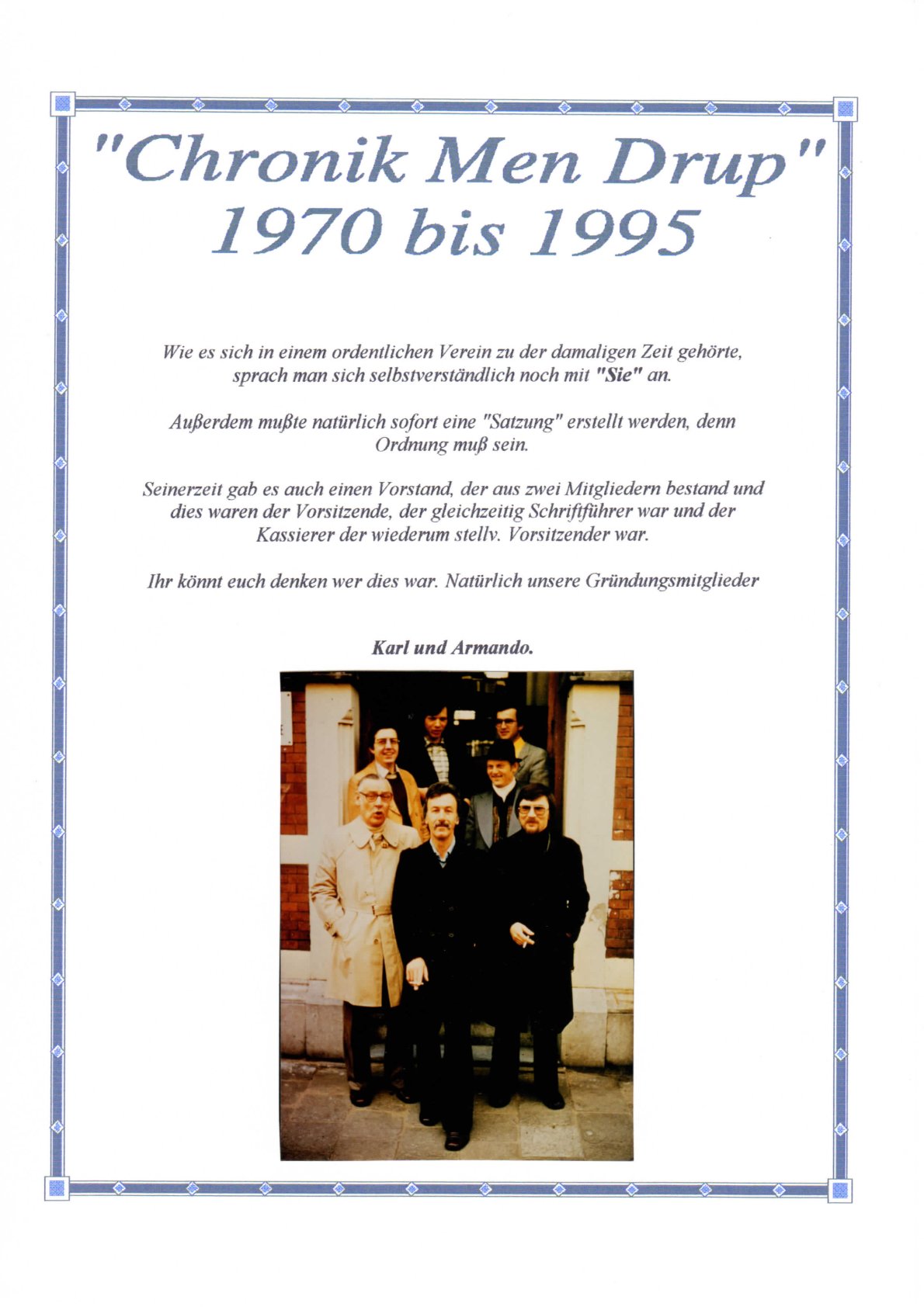 Rechts auf dem Bild ist Ludger zu sehen, der diese Chronik 1995 anlässlich des 25jährigen Jubiläums erstellt hat.